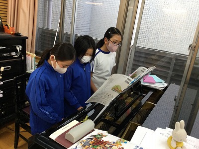 4年生最後の音楽は、「♪さんぽ」の歌に合う“オブリガード”を付けて、ハーモニーを楽しみました。