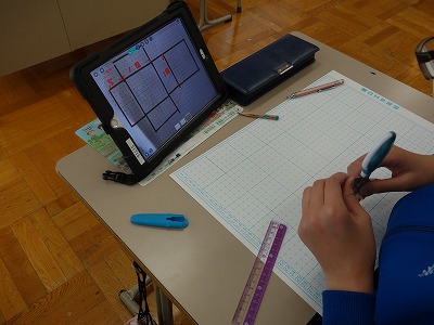 どこが10㎝や5㎝になるか,頭の中で組み立てながら考えていました。のりしろの位置も考えなくてはなりません。