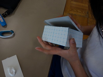 1校時と6校時の算数の時間で,工作用紙を使って容積が500㎤の箱をつくりました。500㎤のかさの感じをつかむ学習です。