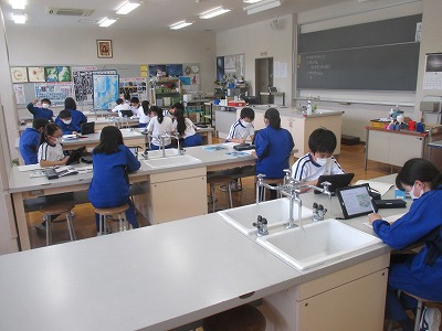 家庭科室の用具点検から学習を始めました。点検を進める中で、「その名称から使い道はイメージできるのだけれど…」という用具をみんなに尋ねてみました。