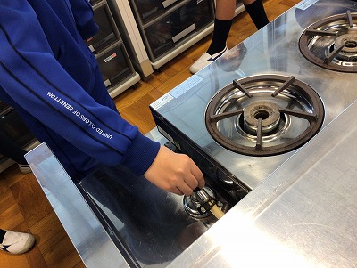 次は、「ガスコンロ」の使い方を学習しました。“ガスの元栓を開く・閉じる”…