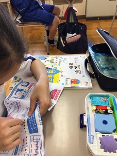 今日は“なみ縫い”に取り組みます。思い出しと、針&糸準備のため、五分間のおさらいタイムを過ごしました。