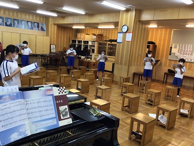 「♪ハローシャイニングブルー」の二部合唱練習中です。