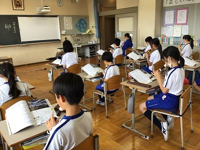 後半は「♪星笛」のリコーダー奏を行いました。音楽室で指練習の“エア奏”を行った後、久しぶりのリコーダー練習を進めました。