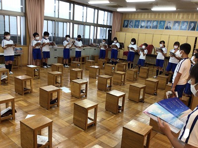 音楽室に合流し、二度目の合唱に取り組みました。ソプラノパートさんから、「アルトパートの歌声が聞こえてくる」という言葉をもらいました。この前より、互いの歌声が響き合い始めた証拠です。