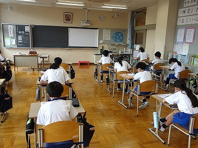 3校時に、国語と社会で学習を終えた2つの単元テストをしました。いつものように、机の間を少し広く開けて準備をし、集中して取り組んでいました。