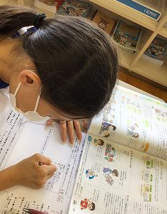4校時の国語の学習では、読書感想文の続きを書きました。「オープニング」「あらすじ」「感想」「まとめ」の4つのまとまりで書くのですが、どのまとまりから書き始めてもよいことにしています。