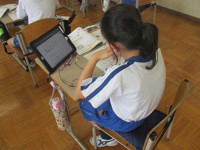 ノートに書いた図をタブレットの写真に取り込み、ロイロノートを使って、考えを共有し、友達に考えを伝える活用ができました。
