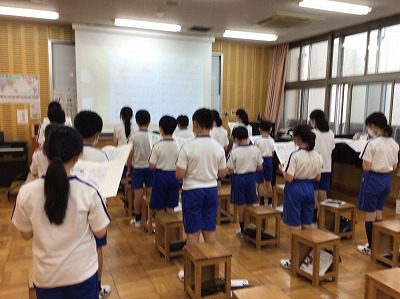 鼓笛隊用の曲2曲のエア練習後は、音楽鑑賞の時間です。