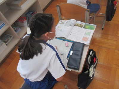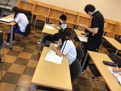 学習場所を分かれて学習中です。個別プリントを黙々と取り組んでいます。