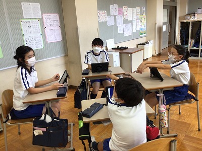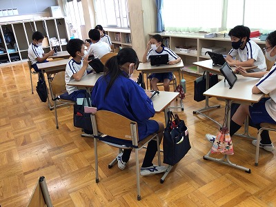 タブレットで、互いの思いや反省、考えを共有し、問題点や改善点を見い出します。