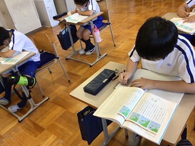 5年生の“朝のルーティン”は、このように進めています。漢字小テストの前には、問題となる短文を音読するところから、まさに“スイッチオン”。