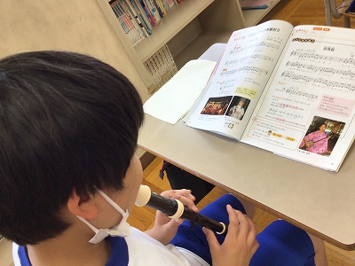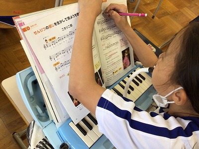 自分の節をみんなに聞いてもらい、列毎につなげて発表します。もう一つ、別の列に伴奏フレーズを吹いてもらうと、あら素敵!即興の沖縄風音楽の完成です!