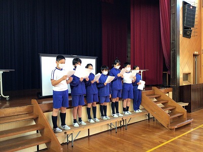 「スクリーンを、ステージの真ん中に持ってくるのはどうだろう?」という担任の提案に、「いいんじゃない!」の了解をもらって、舞台練習を始めました。