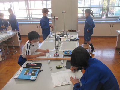 「ふりこの動き」の実験開始です。この単元では「ふりこの周期」が何によって変わるのかを調べます。