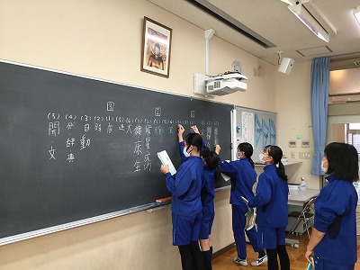 いち早く解けた問題を答えようと、黒板に書きに来てくれました。
