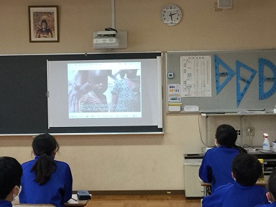 児童会本部から、「100円募金」の意義を記した「ユニセフ募金のチラシ」が配られました。そのタイミングで、もう少し「ユニセフの活動」を知ってほしいと思い、DVDの動画を視聴して、チラシを読み合いました。