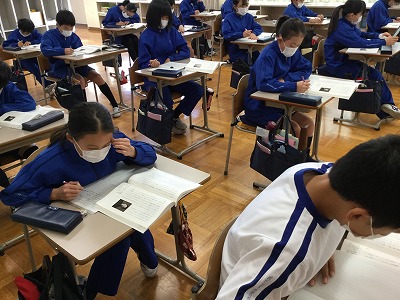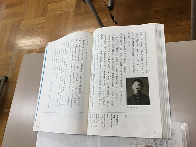 たかし自身が徴兵される前の小段落から印象に残る文章を選んだ人と、戦地/戦後の小段落から印象に残る文章を選んだ人と、はっきり半分に別れていました。自分の思いをノートに書き、周りの友達と共有することで、伝記の読み取りに自信を持ってもらいたいと考えています。