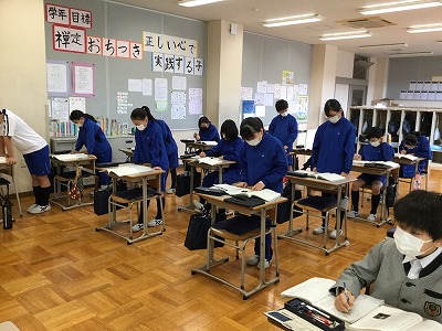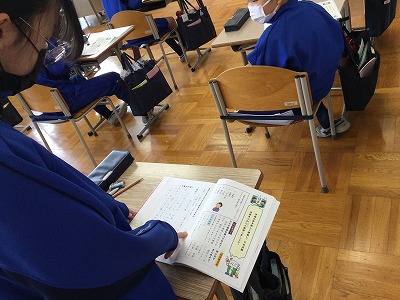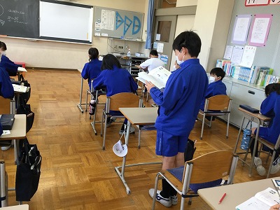 栄養教諭の居相先生に準備や調理過程をお願いし、“エア調理実習”が始まりました。