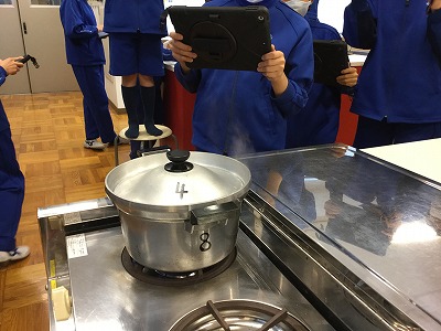 具材の順番は“柔らかくなる時間”を考えて「大根から」ということも、インプットできました。茹でている様子を写真に撮って、ロイロノートに貼り付けます。