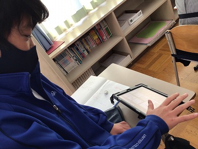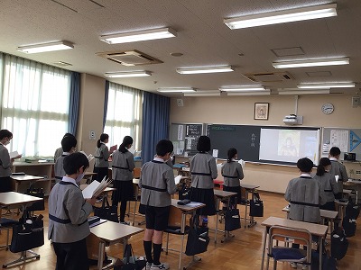 校長先生のご法話の後、「利己と利他、どちらのウエイトが大きかったかな?」と自分に問いかけました。「<、>、=」の記号で示し、その理由をノートに記す所から、月影・道徳の時間を始めました。