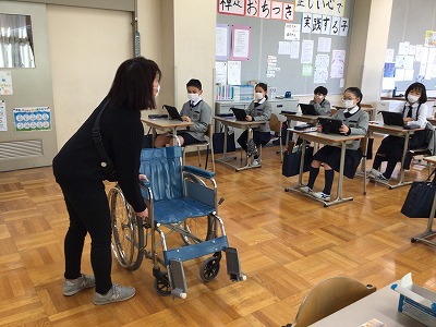 そして、5年生では「車いす生活」や「車いす体験」について考える学習計画が立てられていることもあり、保健室の山野先生から「車いすの扱い」について、レクチャーをお願いしました。
