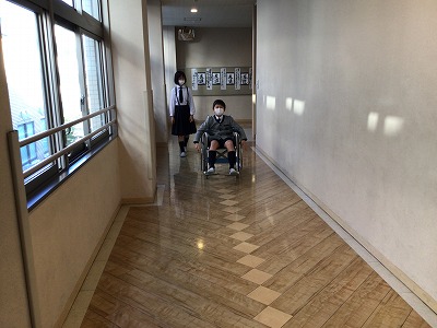 廊下では、自分で操作することも体験しました。「思っていたより軽く動かせた」と感想を書いていた人がいました。