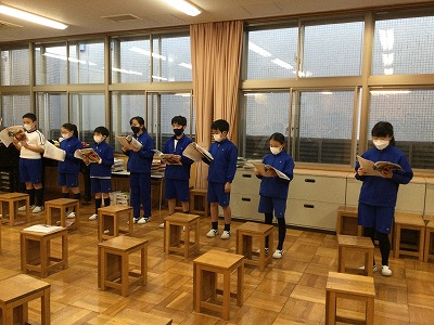 聖日参拝で歌う「聖歌」や、全校キッズで取り組む「夢の世界を♪」の歌唱練習も行いました。