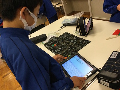 ロイロノートの機能を使って、完成の報告をしてもらっています。