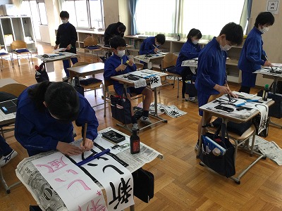 今週から「新しい委員会活動」がスタートしています。その新鮮さと、自分たちの手で、学校に新しい風を吹かせるぞ!という思いで、画仙紙に向き合ってほしいと願いました。