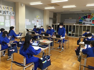 最後は、クラス全体で『透明トイレ』について、賛成・反対 の意見をぶつけ、それぞれの立場を明らかにして、「利用者の思い」「本当に防犯につながるのか?」など、自分に置き換え、積極的に意見を述べていました。