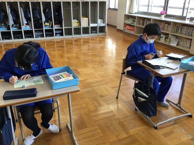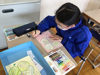 学活の時間だけではなく、休み時間も使って“れんげ班プレゼント”を仕上げています。