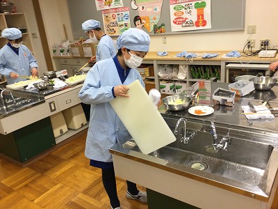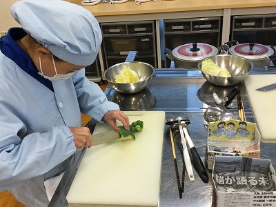 人参は“半月切り”や“いちょう切り”に。ブロッコリーをこうして切り分けることは“初めて”という5年生が多くいたことでしょう。