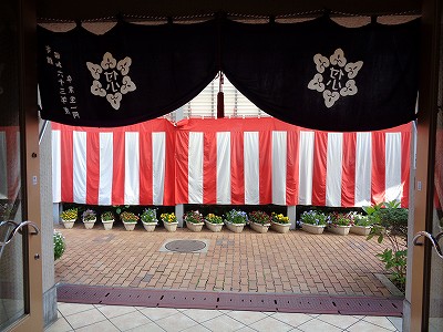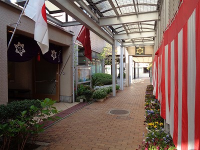こちらは玄関前です。文教キッズみんなで植えたお花ロードです。