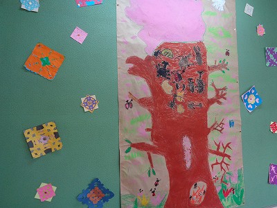 どしっとして、立派な木ですね。昆虫たちが集まって楽しくおしゃべり。