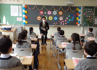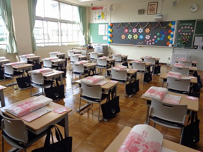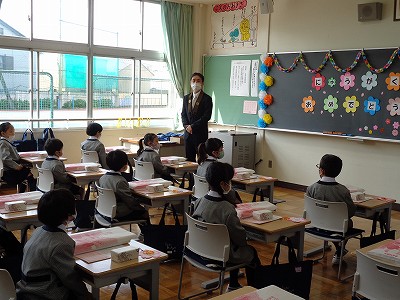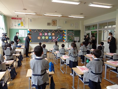 毎年、全校生の大きな拍手で迎えられる入学式ですが、昨年度より新型コロナウィルス感染拡大防止のために、時間と内容を短縮し 1年生だけが式に臨みました。2~6年生の在校生は教室です。自分の入学の時を思い出しながら、新1年生に心のエールを送っていました。