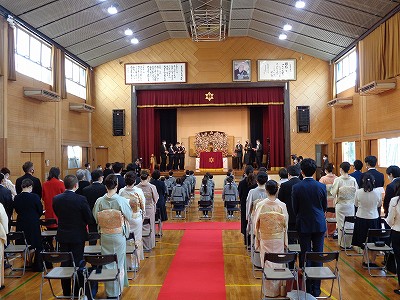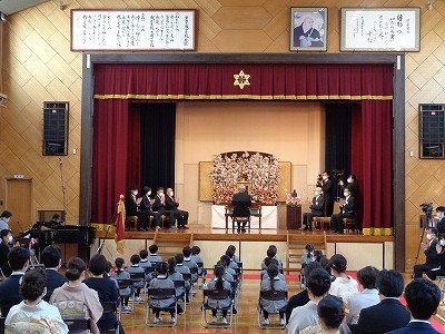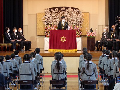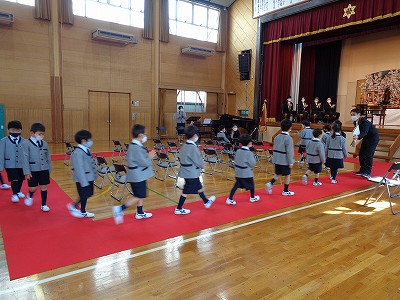 校長先生よりあらためて、1年生担任の先生紹介がありました。音楽がとっても得意な先生です。式のはじめに仏教聖歌を弾いていたのも、担任の先生でした!(最後の校歌も弾いていました。) 1年生の期待がふくらみます! この1年間、どんな歌を教えてもらうのかな?