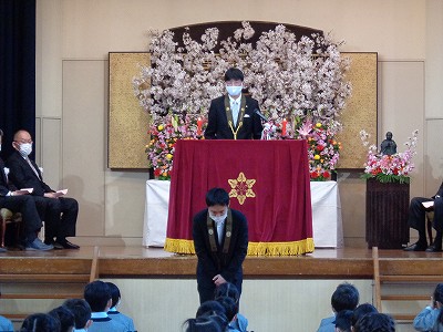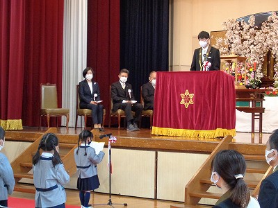 児童会代表の6年生より「お祝いの言葉」の挨拶がありました。堂々と はきはきしたスピーチに、やさしそうな雰囲気...「あんな お兄さんになりたいなぁ」と思った1年生がいたことでしょう。