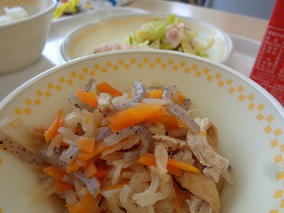 ベーコンも入っています。苦手な人も多いピーマンですが、豊富なビタミンが健康な皮膚を保つ働きをしてくれます。健康な皮膚は、病気から体を守るためになくてはなりません。少しでもチャレンジして、みなさんに食べてもらいたいです。