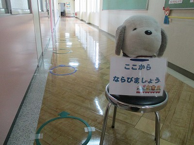 今週は内科検診と検尿、身体計測を行っています。密を避けるために保健室に入る人数を最小限にして、並ぶときも間隔をあけています。