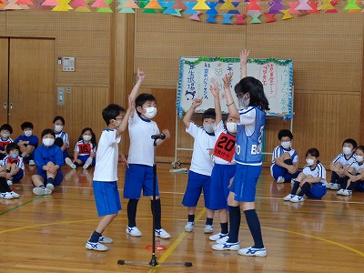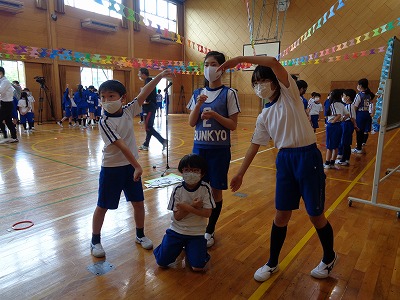 オール文教キッズが、班毎に 体育館の中央で、大パフォーマンスです!