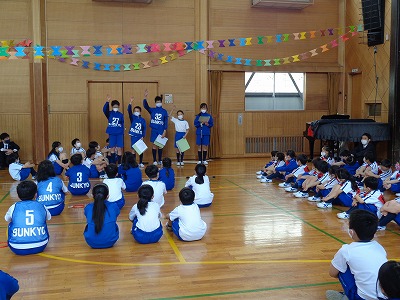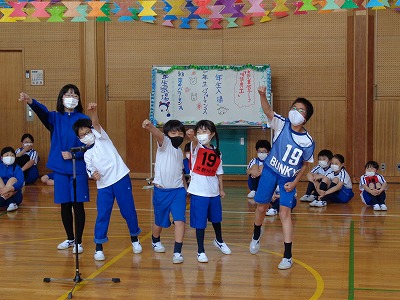 昨年のこの時期は休校期間でした。今の2年生は去年、この集会に参加できなかったのです。校長先生は2年生を気遣い、「一緒に楽しんでくださいね。」と声をかけられました。