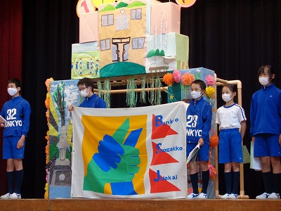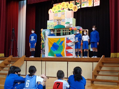 終わりに、児童会本部メンバーより「児童会旗」の紹介がありました。