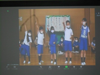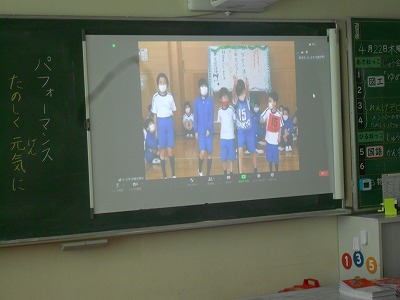 前半、後半に出場する2,3,4年生は、教室のオンラインでその様子を楽しみました。