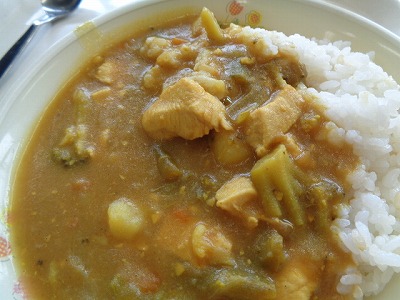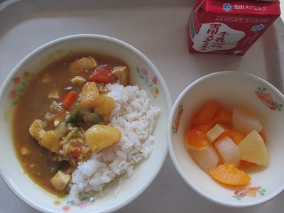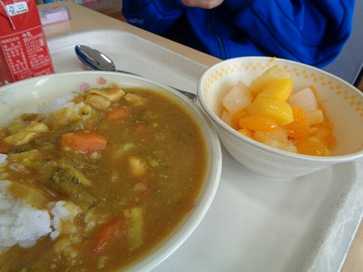 週末はチキンカレーで給食の締めくくりでした。食べやすいメニューですが、流し込んで食べることのないように、しっかりとよく噛んでいただきました。