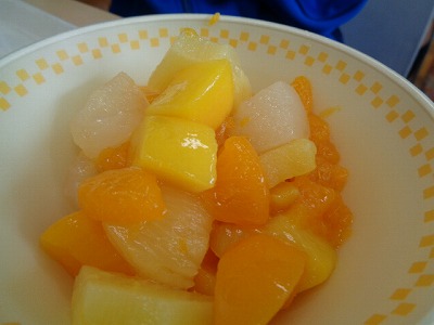 フルーツカクテルは、カレーを食べた後のデザートです。甘酸っぱい味と香りでした。