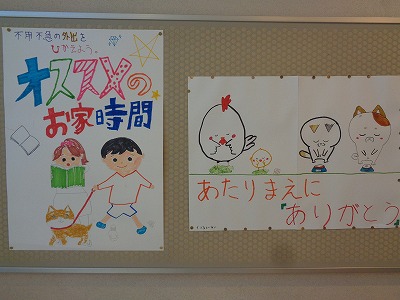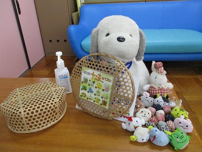 保健室に来たことがある人は知っているかもしれませんが、保健室にはぬいぐるみがたくさんいます。写真は、保健室に来た6年生が飾ってくれたぬいぐるみです。みなさんが触れるので、定期的に洗濯や天日干し、消毒をしています。触るときも、消毒してから触るよう呼びかけています。