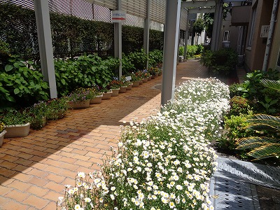 実は大橋先生が、玄関前にプランターのお花を手入れして飾ってくれました。