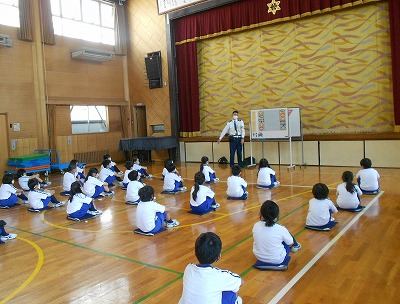 今日の3,4校時、体育館で「交通安全教室」がありました。1,2年生の子ども達がしっかり話を聞いて実践をしました。学年ホームページをどうぞご覧ください。