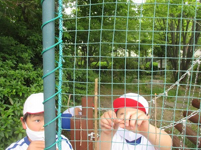近くで遊んでいた3年生と、ひと作戦練っているところです。